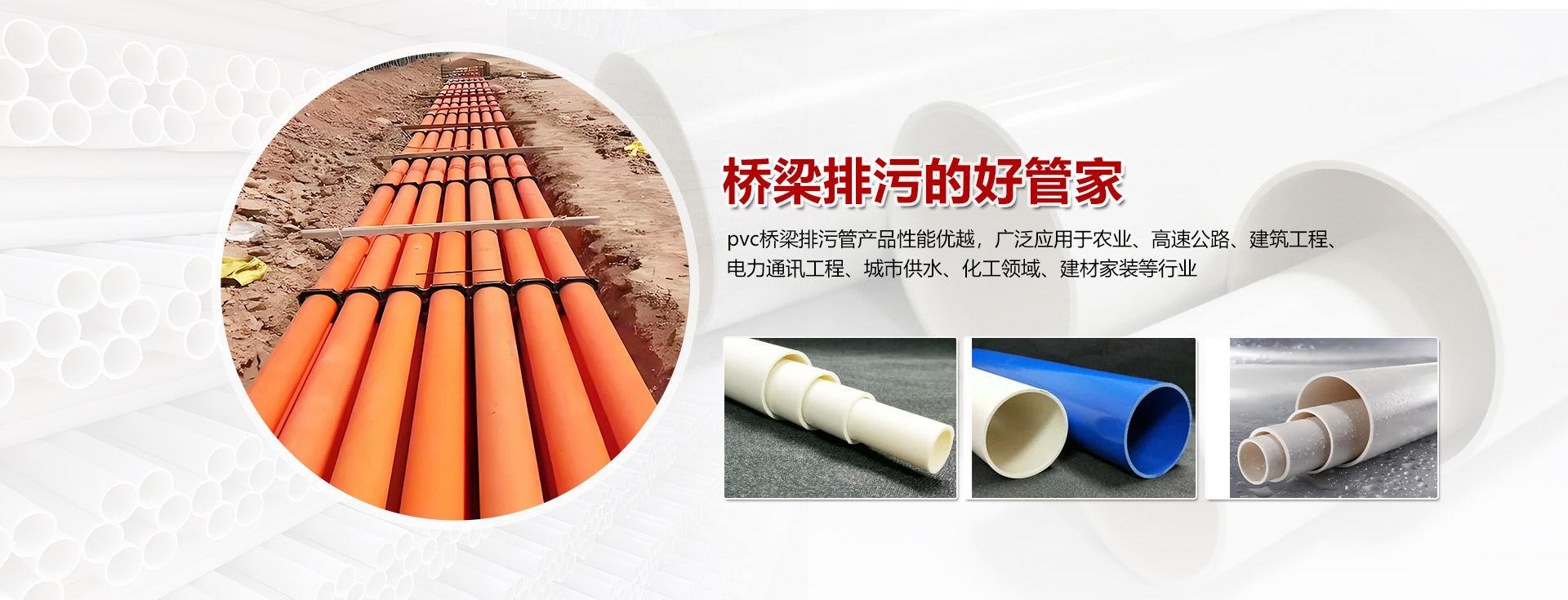 主營產品包含橋梁排水排污管,電子通信PVC管材管道,電工套管,農業(yè)排污管等;